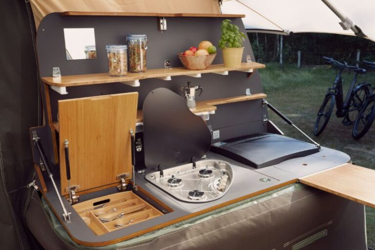 The Wind®Force System is integrated into this folding trailer, which automatically inflates and folds the tent at the push of a button. In addition, the Aero features a comfortable king-size slatted bed base with a luxury cold foam mattress.