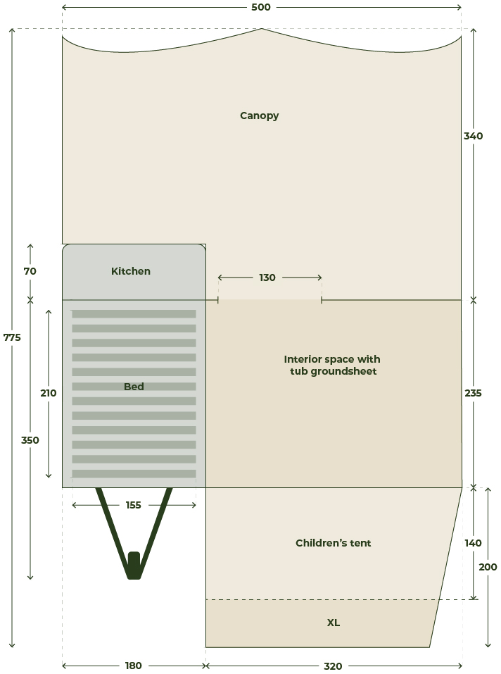 The folding trailer without loose tent poles and guy lines. This makes the tent easier to set up and requires less ground space. The Aero is suitable for any travel party and offers a spacious interior.