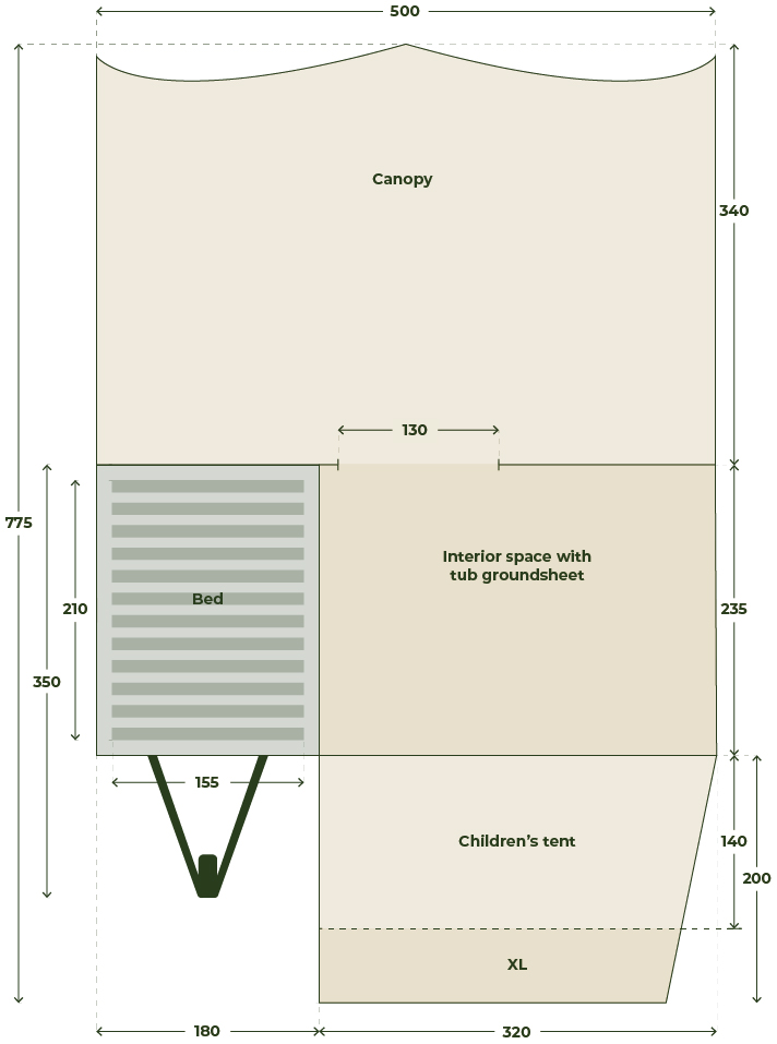 Kidstent M – Extension for 2 children, steep back panel (140cm x 310cm) € 895,-