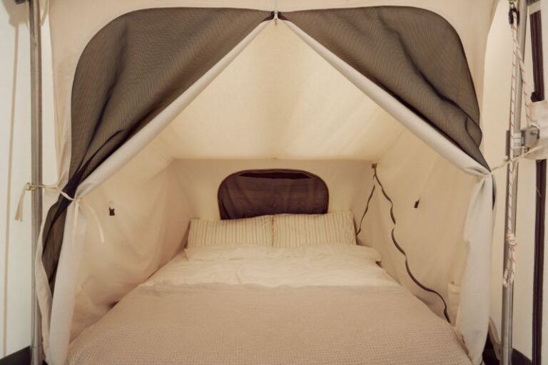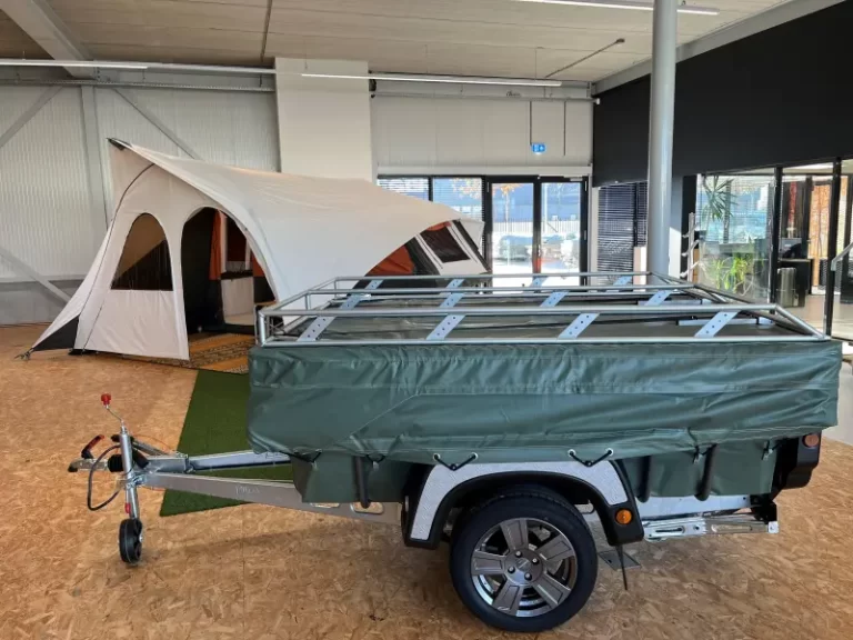 A tasteful design. A Holtkamper tent folding system. A storm-proof tent. A comfortable bed. A flexible number of sleeping places. “All Climate” windows. Extra ventilation and no condensation, due to the “Membrane Airco” System. Access to the luggage space, even when the tent is folded away, by the Pack & Go System.